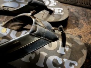 My slippers gave up on me again. Last month, my Crocs cracked open. This month, the straps on a five-month-old